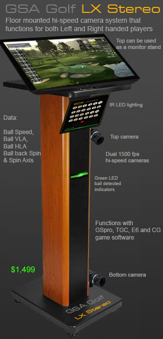 The LX Stereo is designed for those that want a ball launch monitor tracking system that functions for both LH and RH players but don't want to have to mount a unit on the ceiling