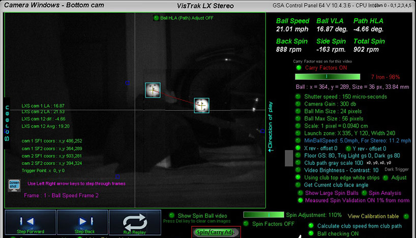 The bottom camera detects VLA and spin, and the top camera is used to detect HLA and side spin.