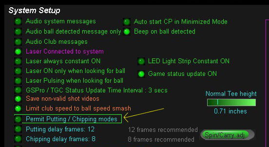 Due to an issue with the GSpro API, the CP can occasionally get stuck in Putting Mode after moving to the next hole